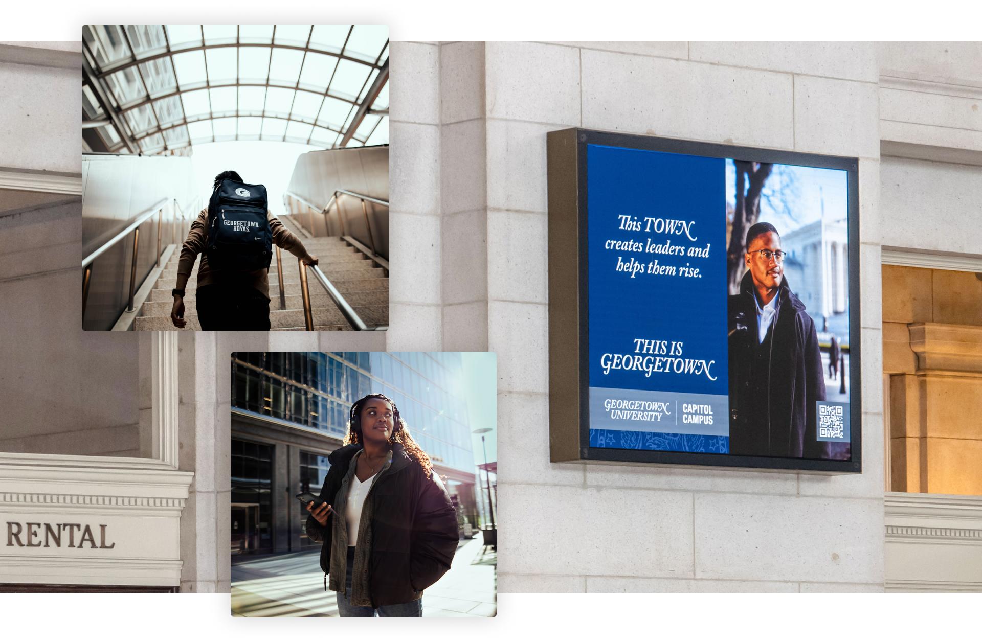 Our target audiences were diverse — from prospective Capitol Campus students, to D.C. influencers and the University community itself. Before the microsite launched, we put the campus on their radar by creating an out-of-home campaign that kicked off with high-profile signage at nearby Union Station — DC’s hub. The campaign laid claim to DC as “our town.”